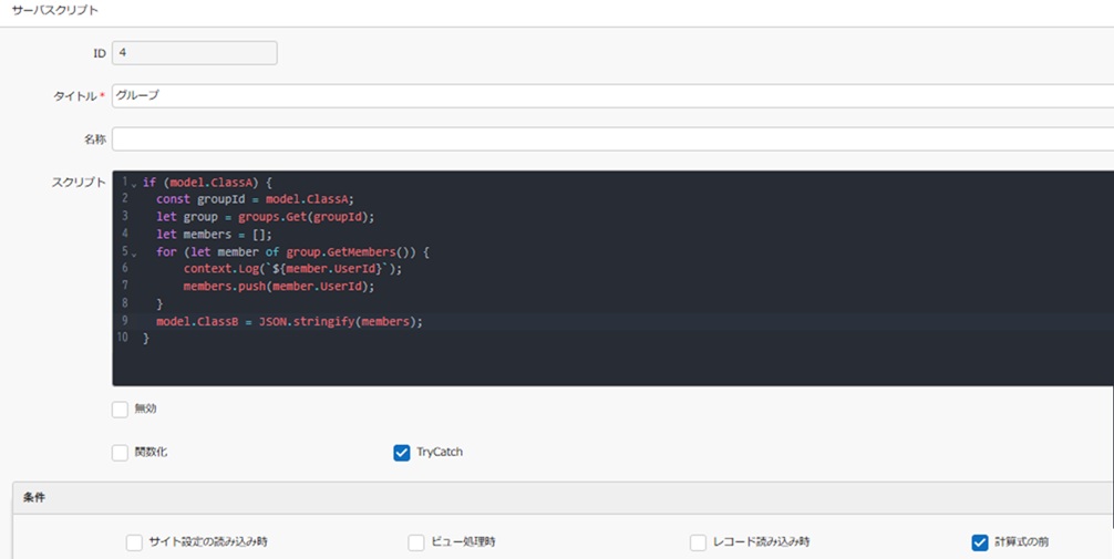 サーバースクリプトで値を設定する場会、通常は model.ClassC = “りんご”; のように書きます。
