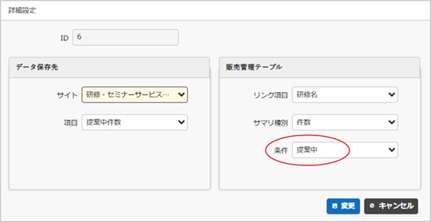 設定したサマリを開き、[条件]に「契約完了」をセットし「変更」ボタンをクリックします。