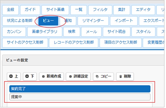 同様に、[状況]が「契約完了」のビューも設定します。