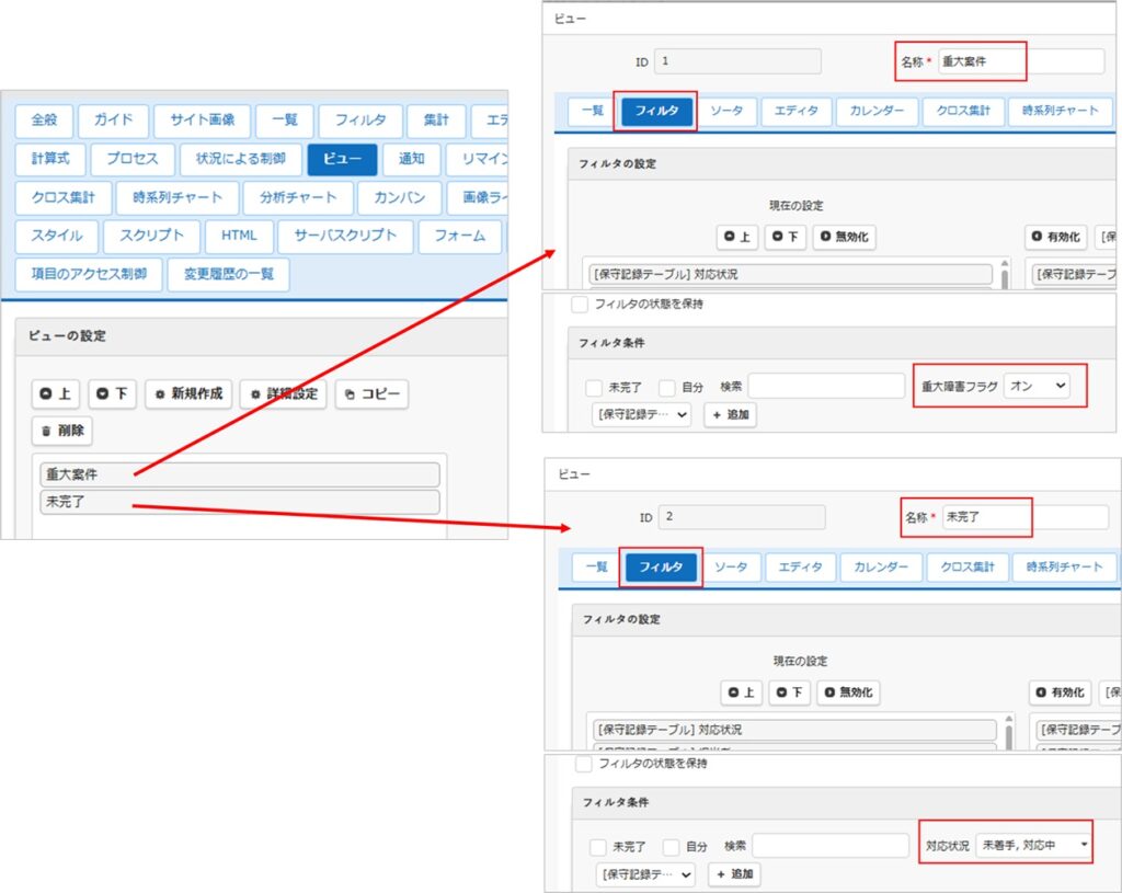 子テーブル「保守管理テーブル」でビューを設定します。