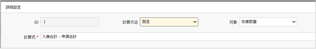 [入庫数] から [申請数] を減算することで [在庫数] を算出する計算式を設定しておきます。